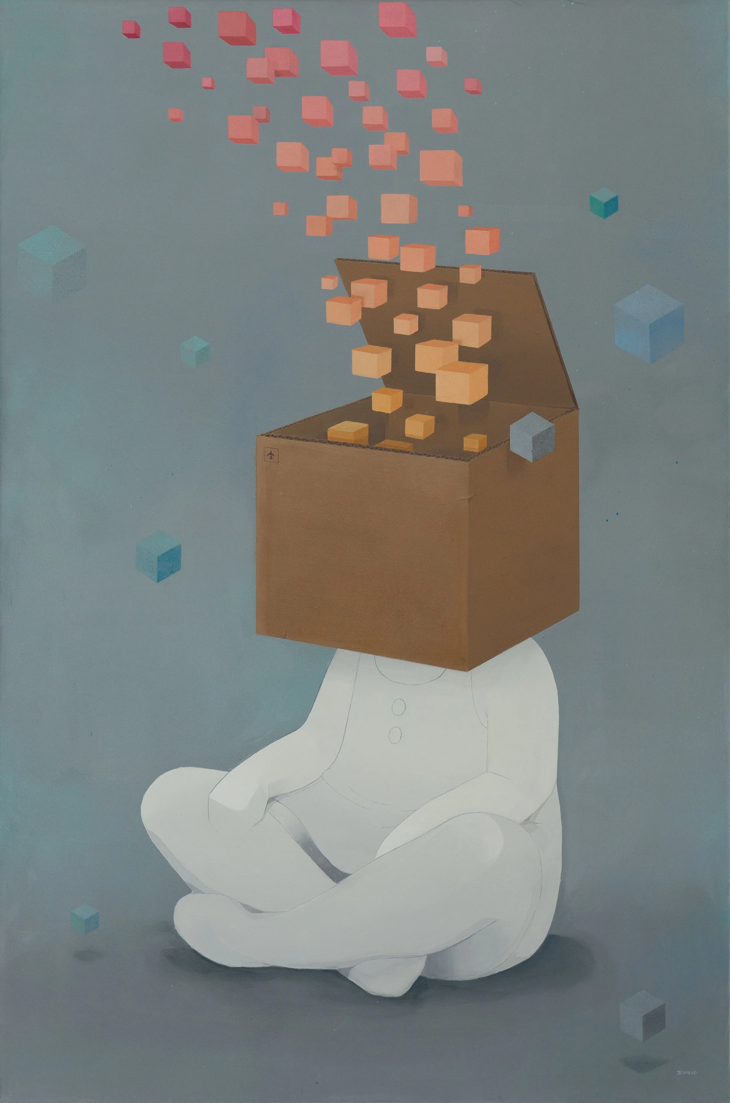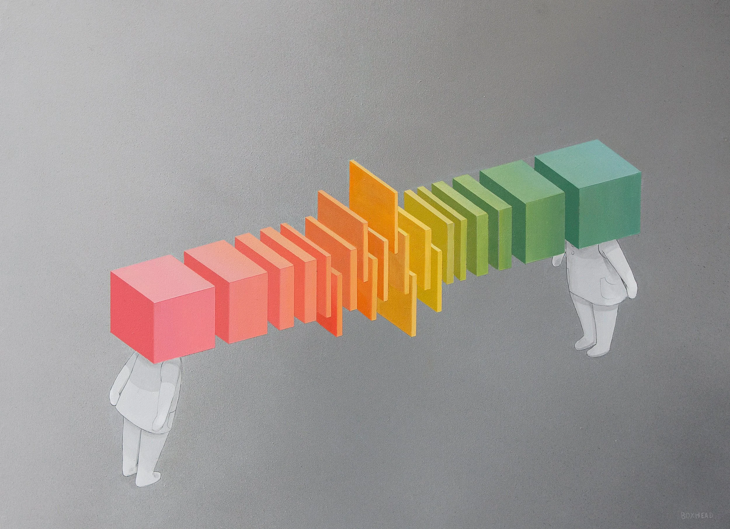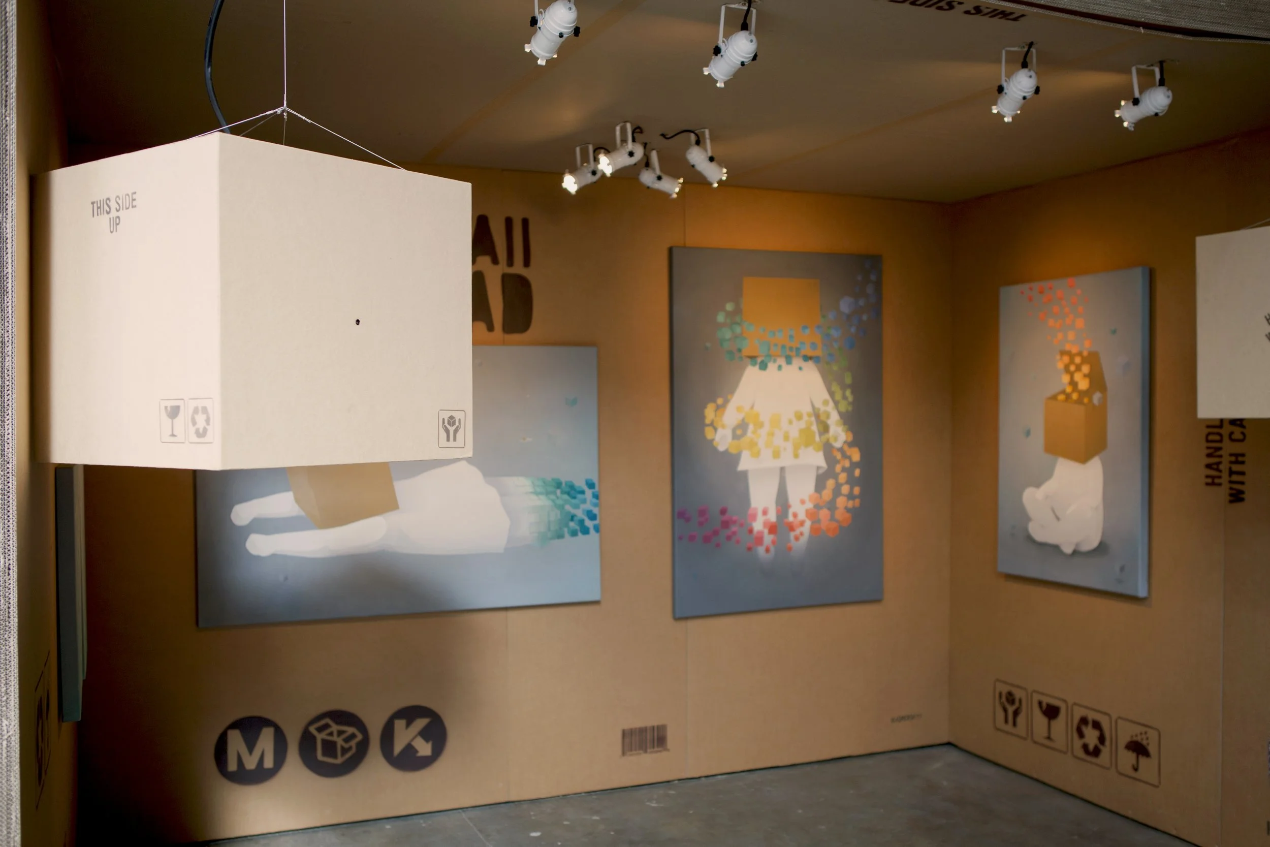 Boxhead takes physical shape through painting, sculpture and installation. What exists internally begins to surface, shifting from something imagined into something we can stand in front of, walk around, and encounter, existing now within shared space.