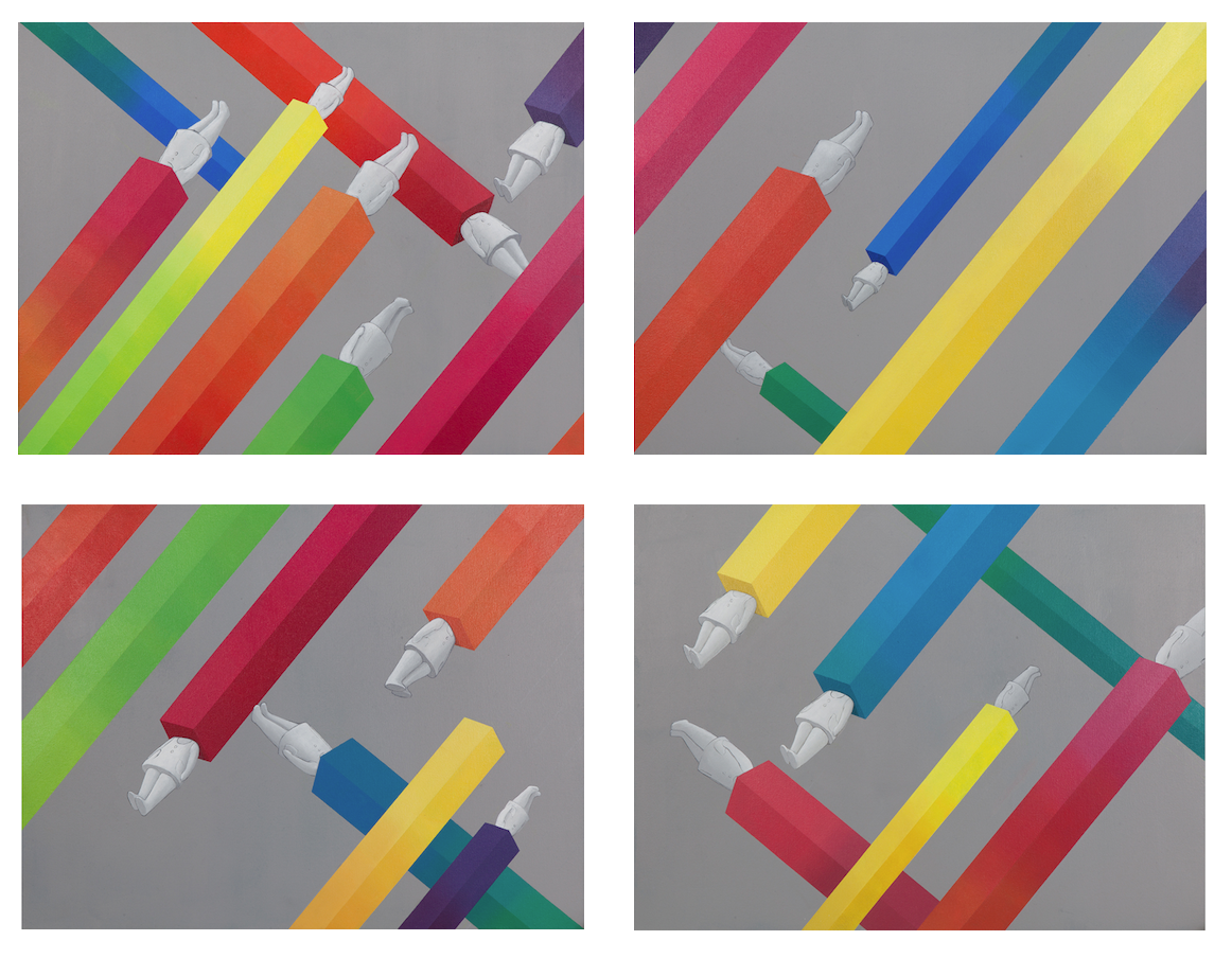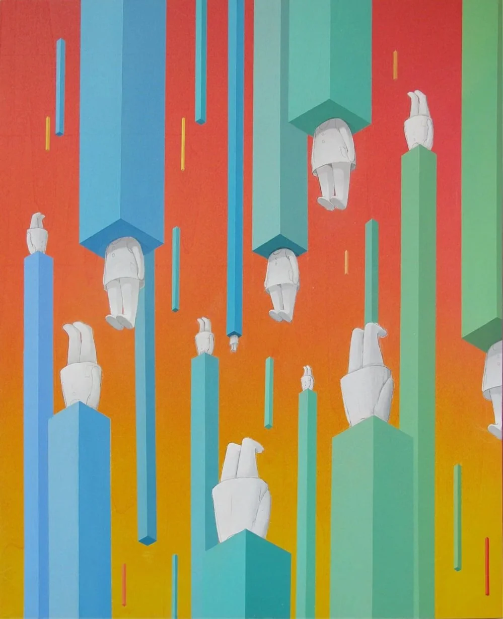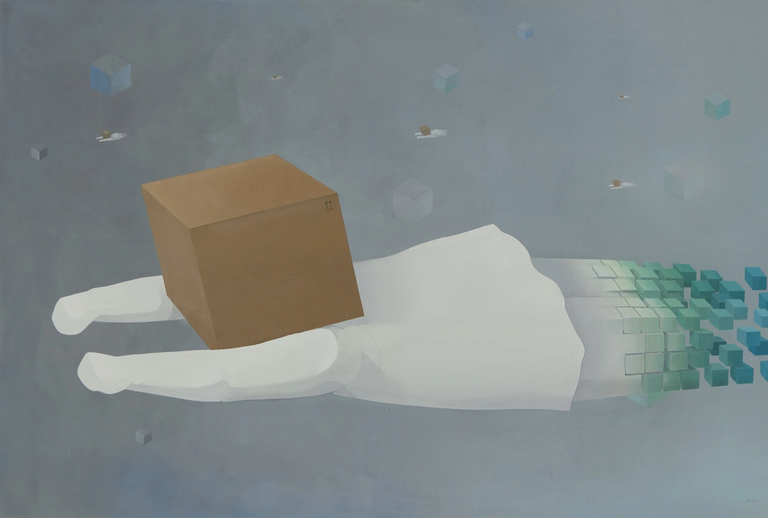 Boxhead takes physical shape through painting, sculpture and installation. What exists internally begins to surface, shifting from something imagined into something we can stand in front of, walk around, and encounter, existing now within shared space.