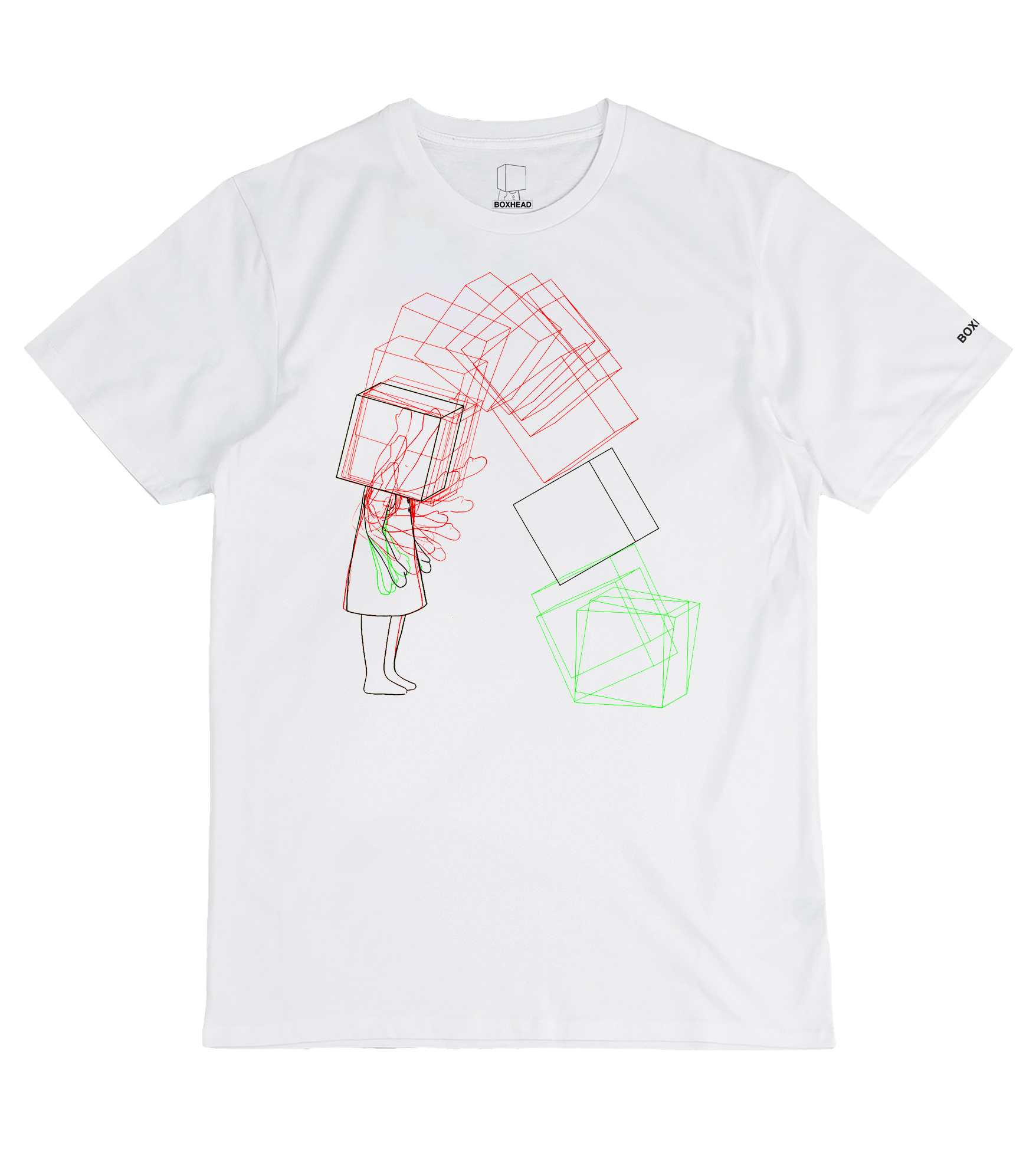 A selection of Boxhead pieces you can wear, hang, or keep. Art prints, t-shirts, stickers and small objects that bring Boxhead into your everyday.